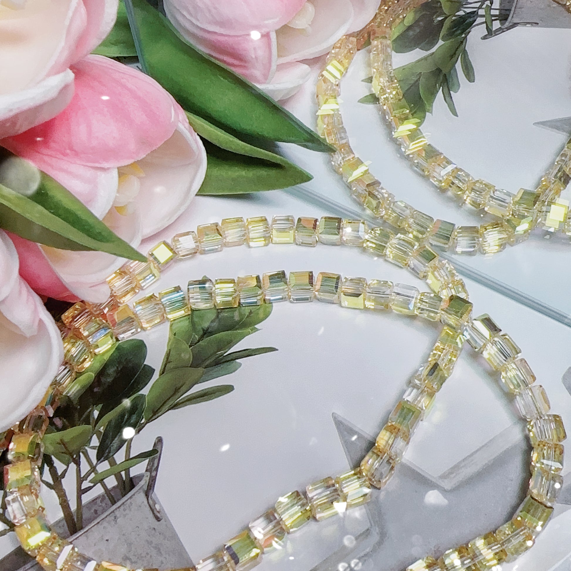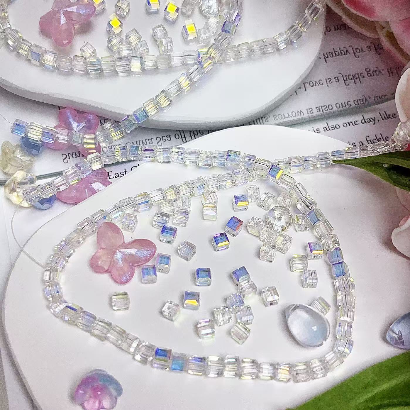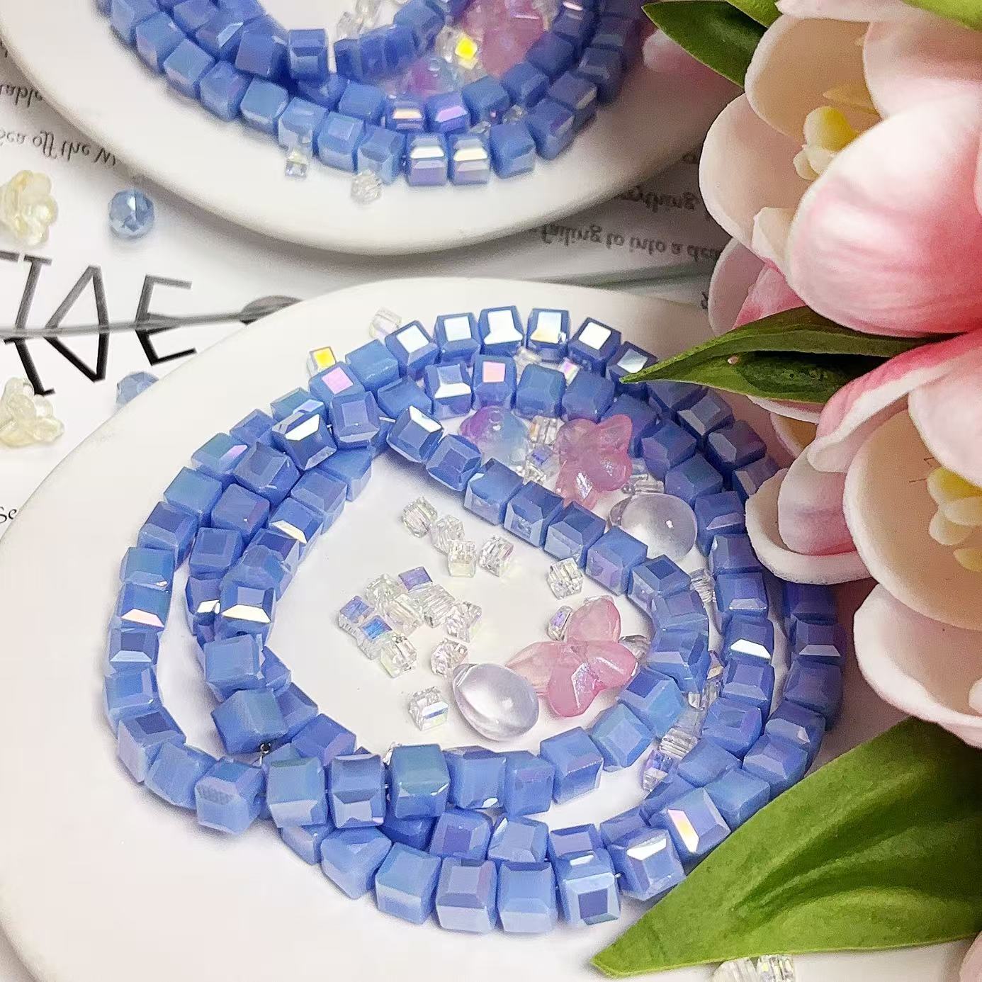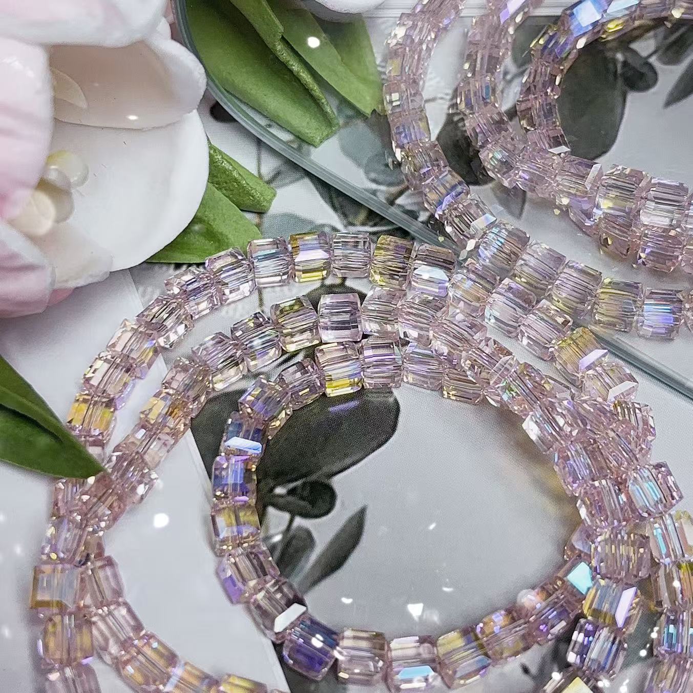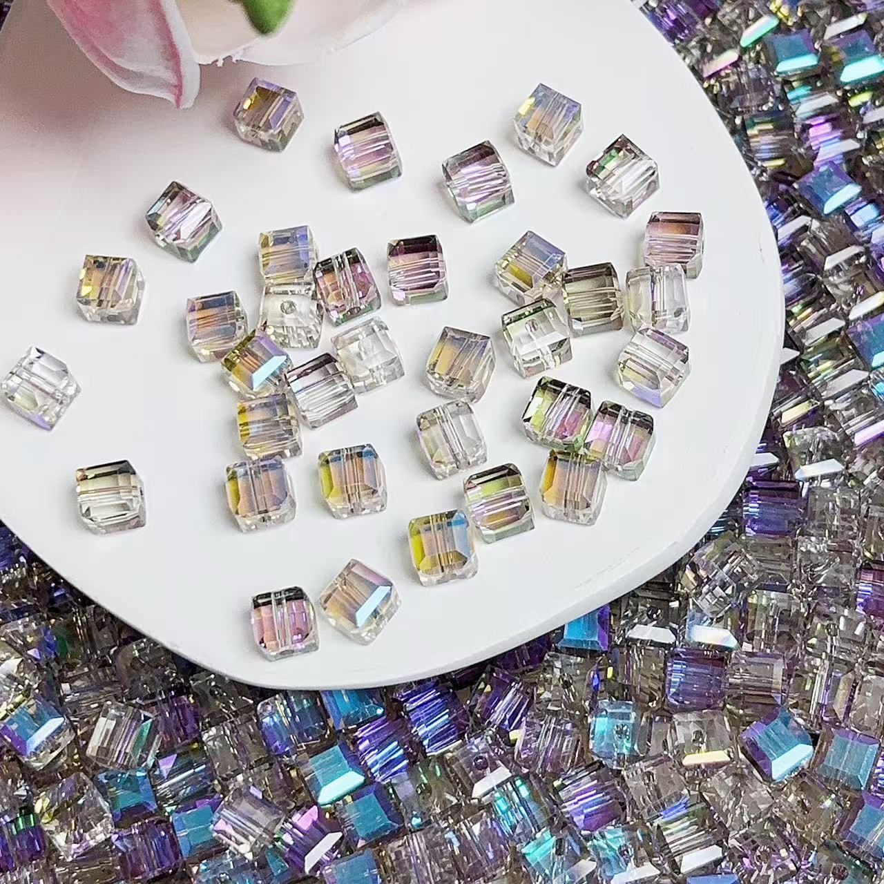 0.23 角砂糖形ビーズ | カラーメッキ、明るい (4mm&6mm)の数量を減らす