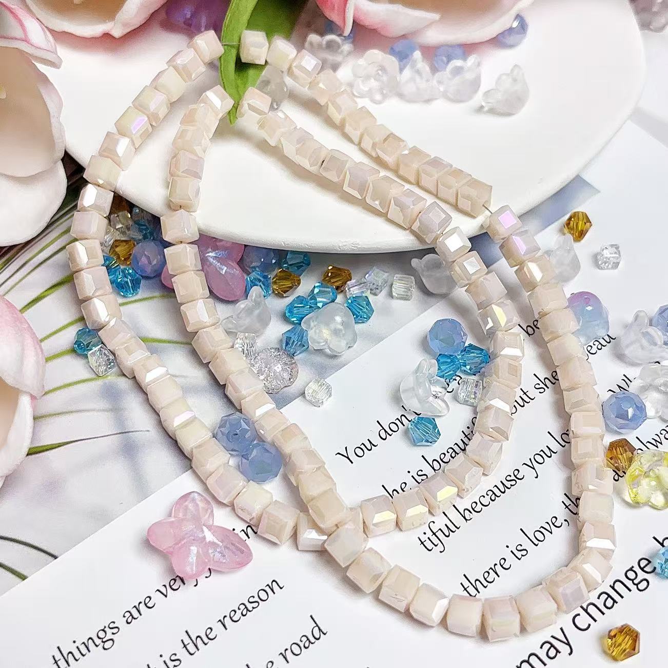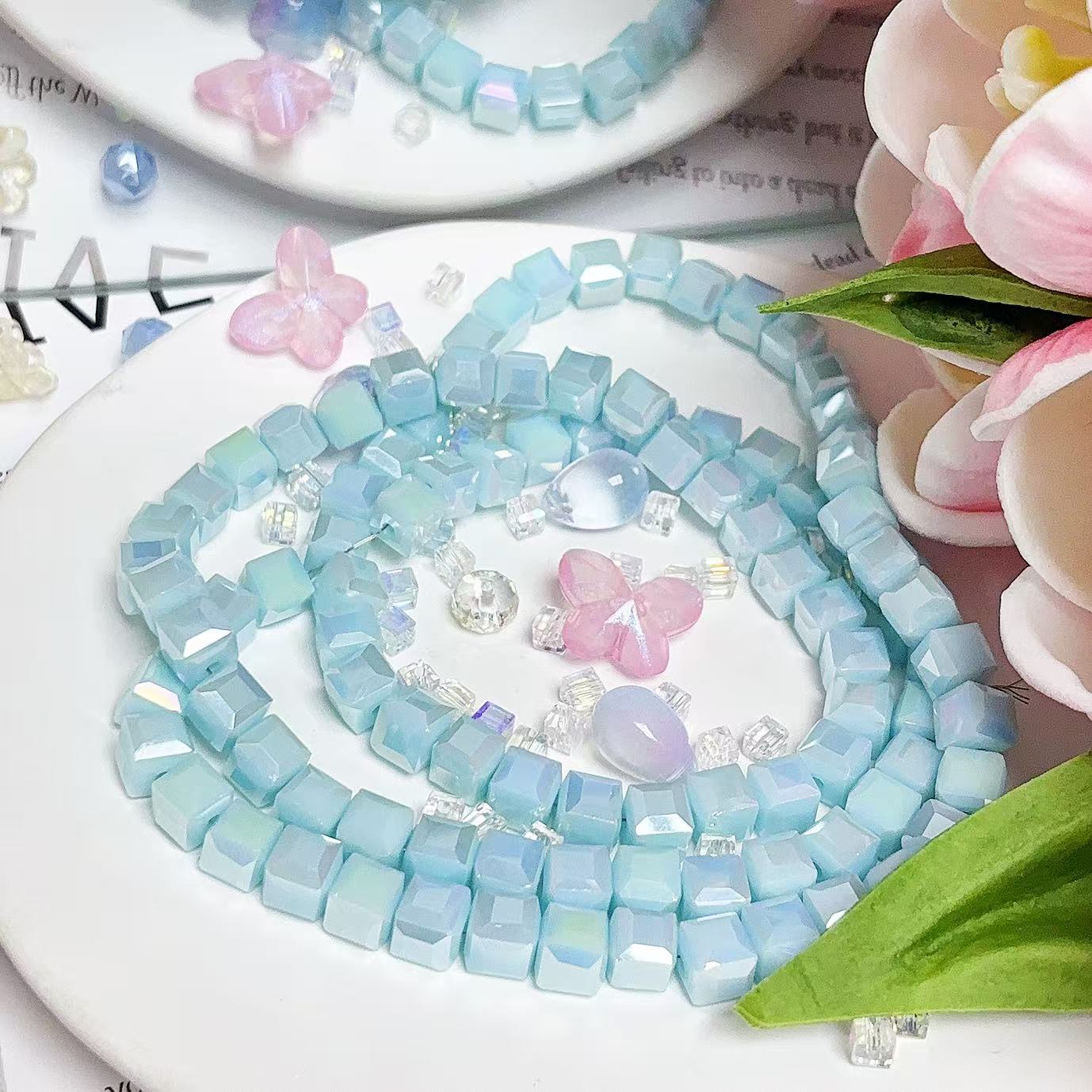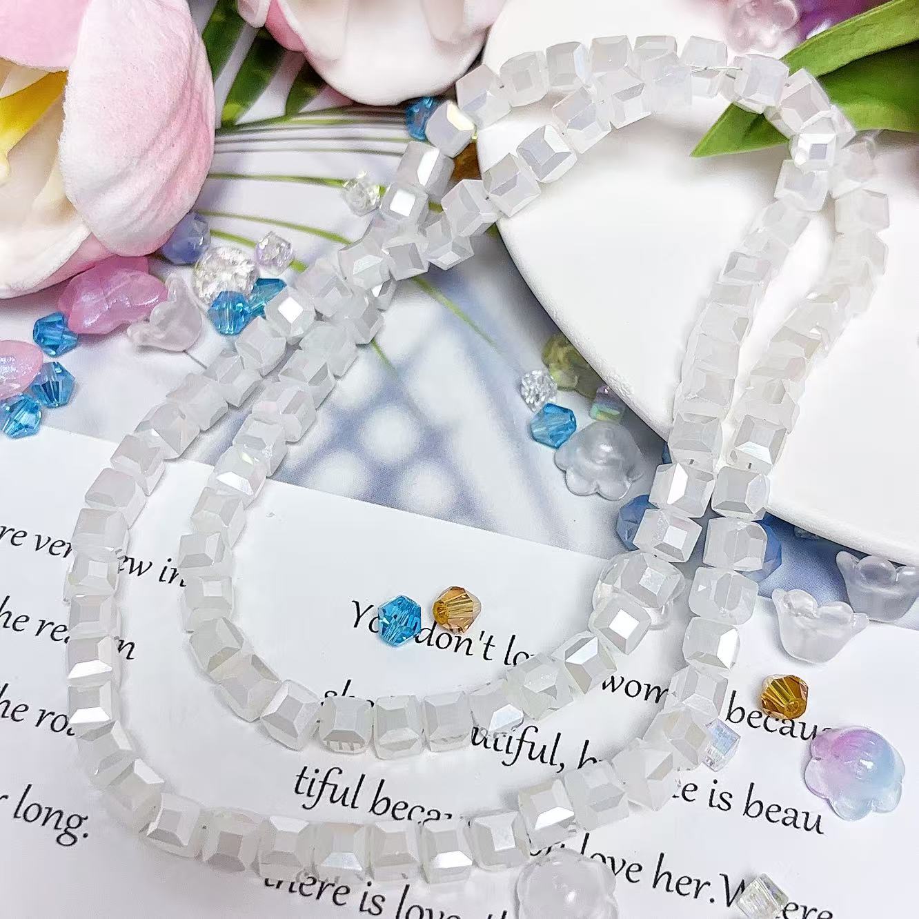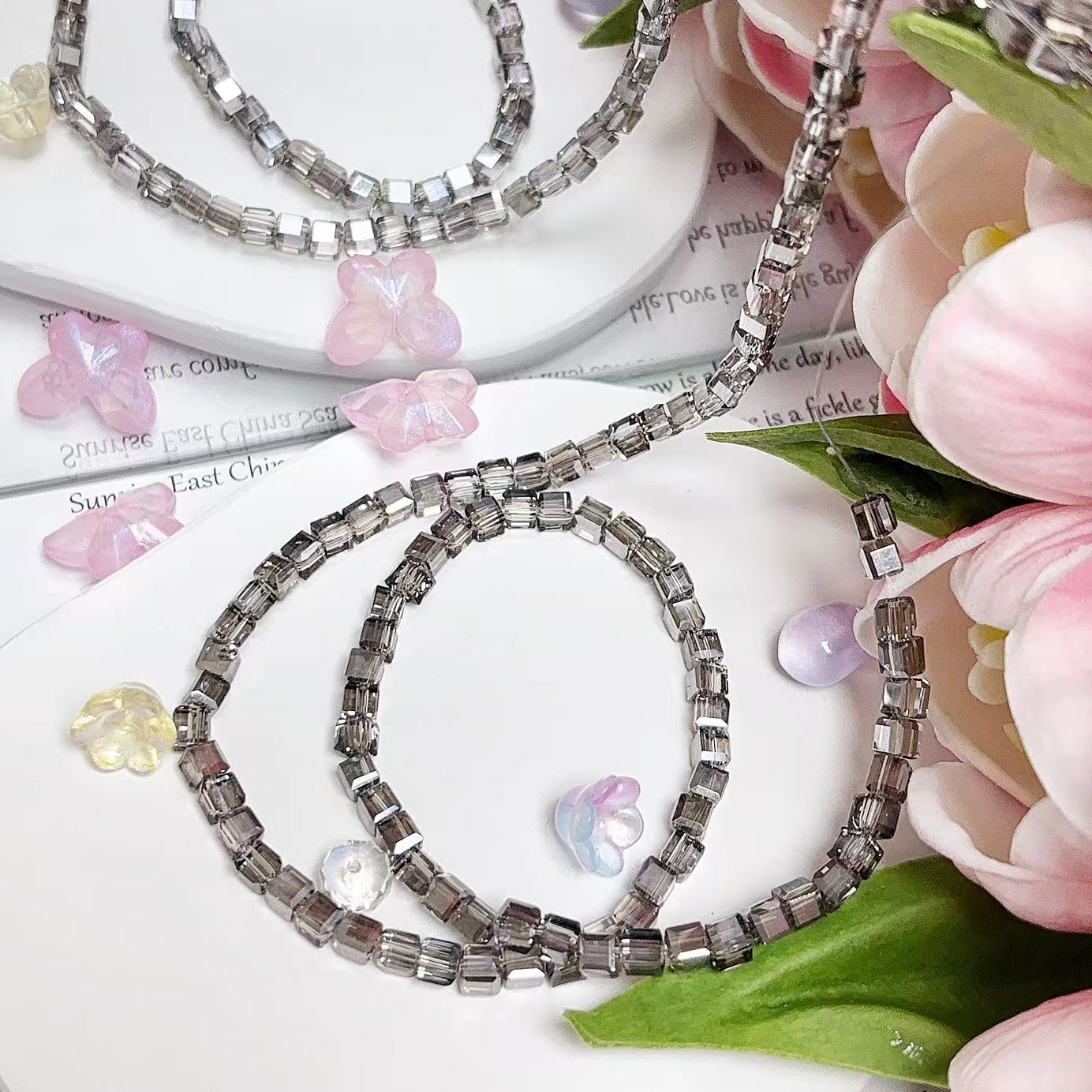 0.23 角砂糖形ビーズ | カラーメッキ、明るい (4mm&6mm)の数量を減らす
