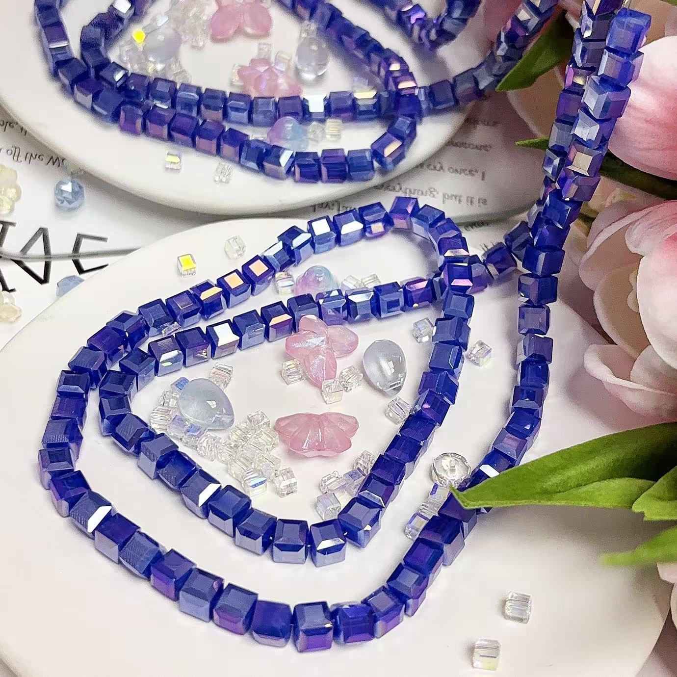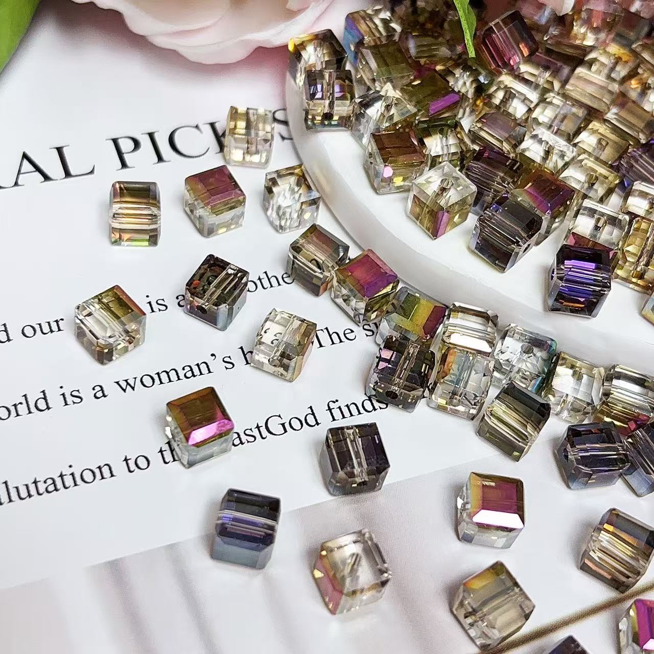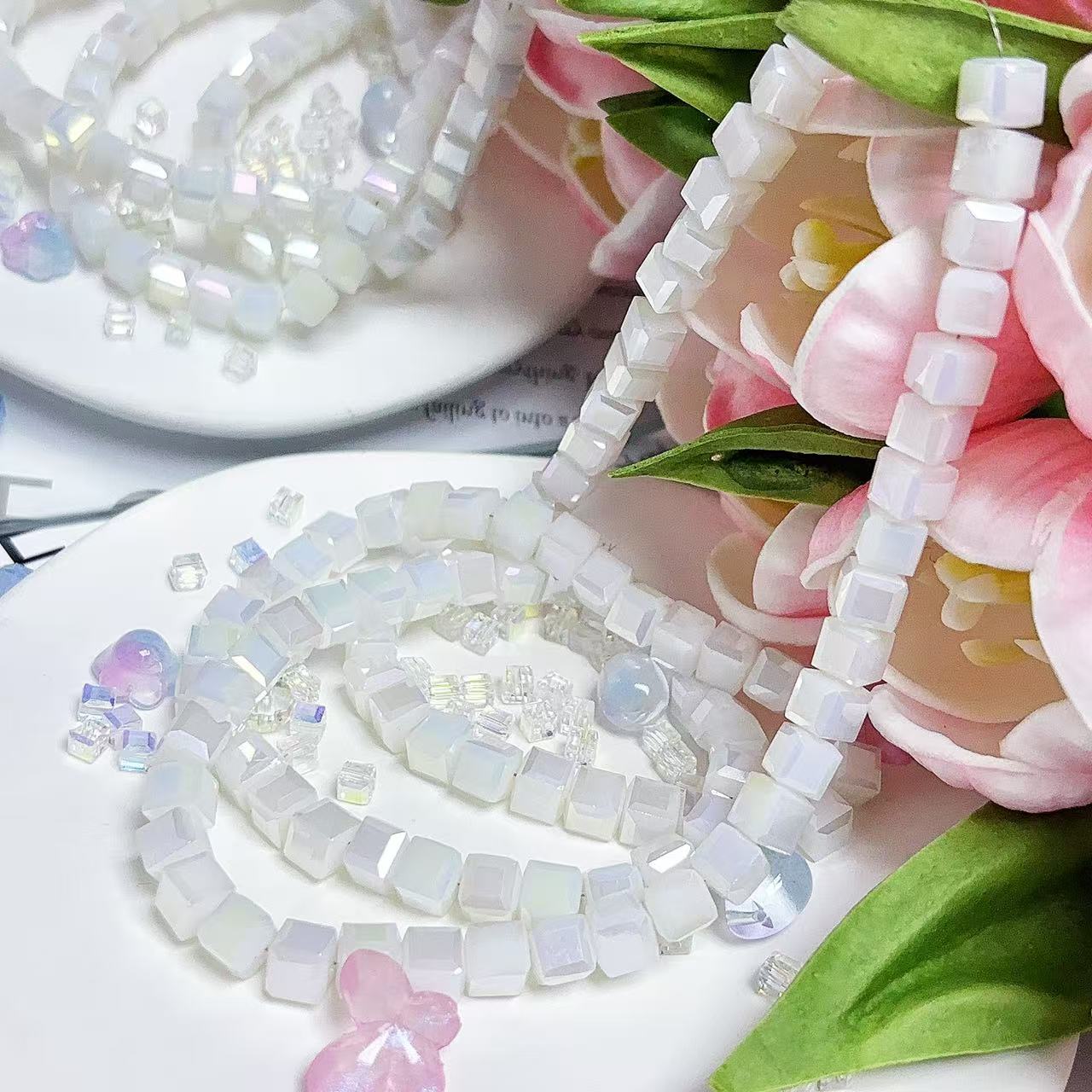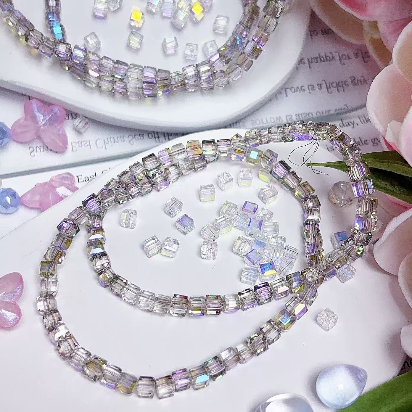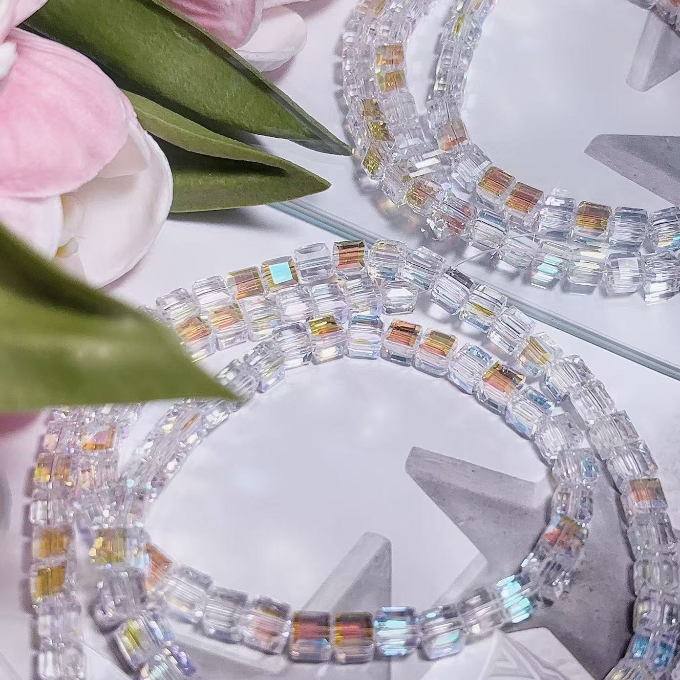 0.23 角砂糖形ビーズ | カラーメッキ、明るい (4mm&6mm)の数量を減らす