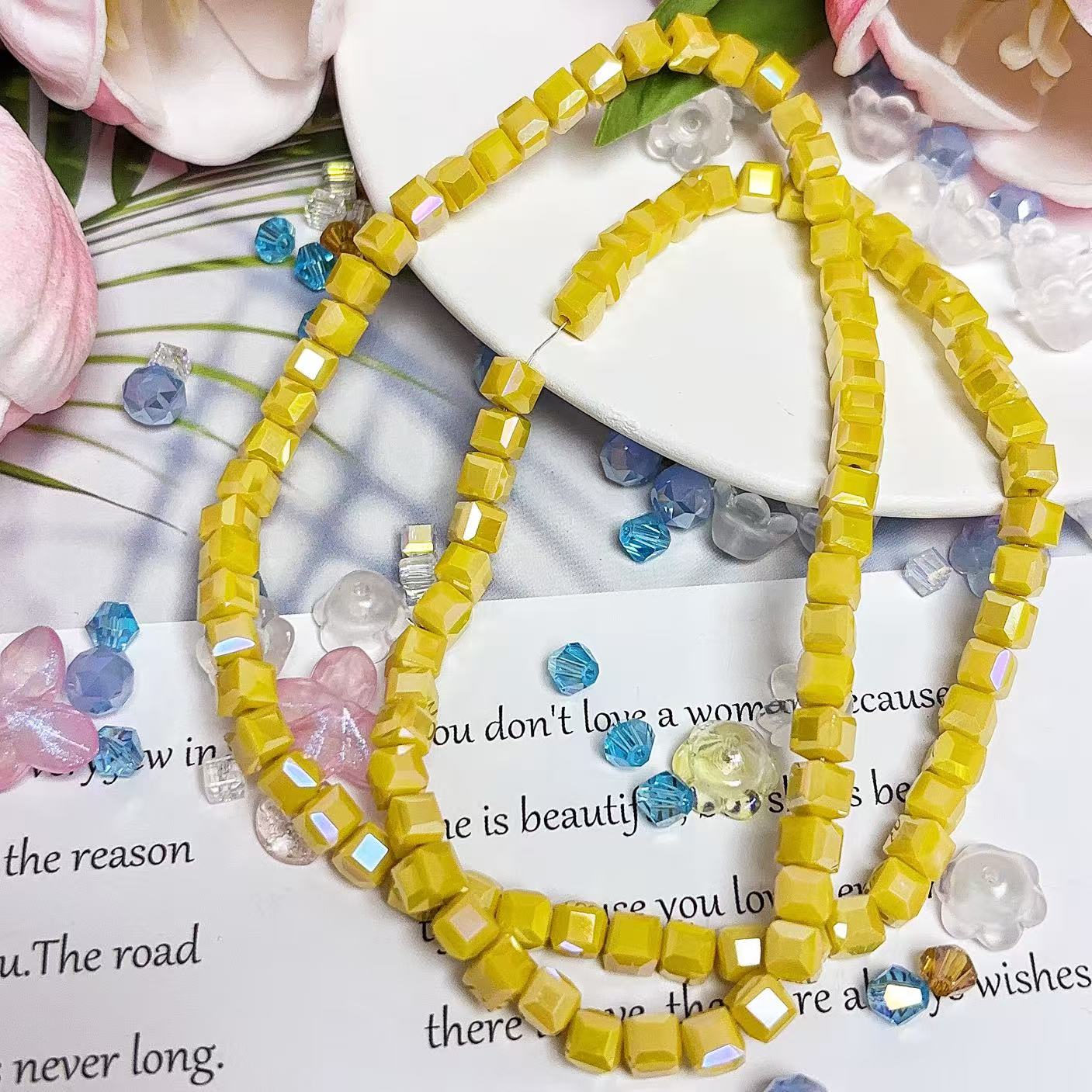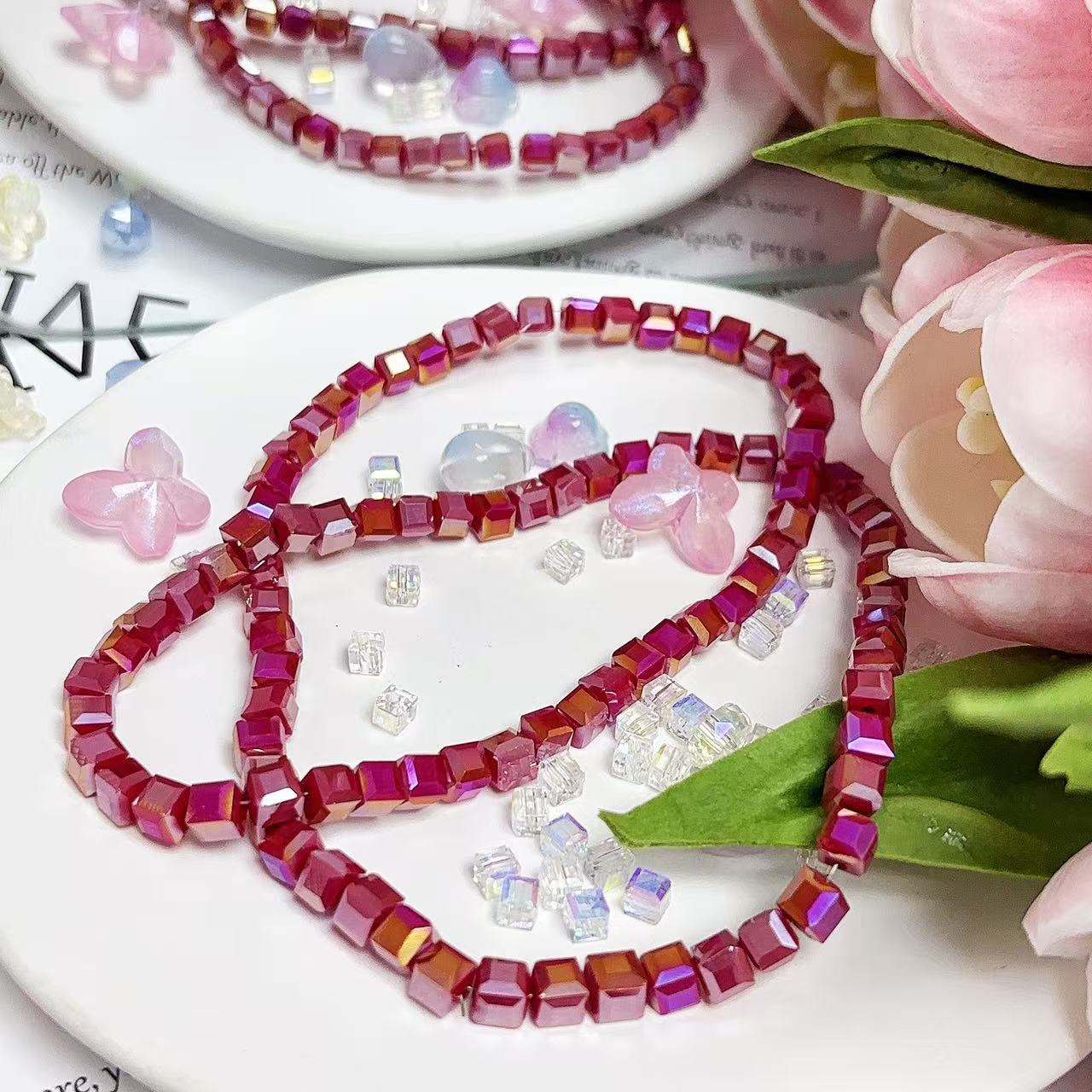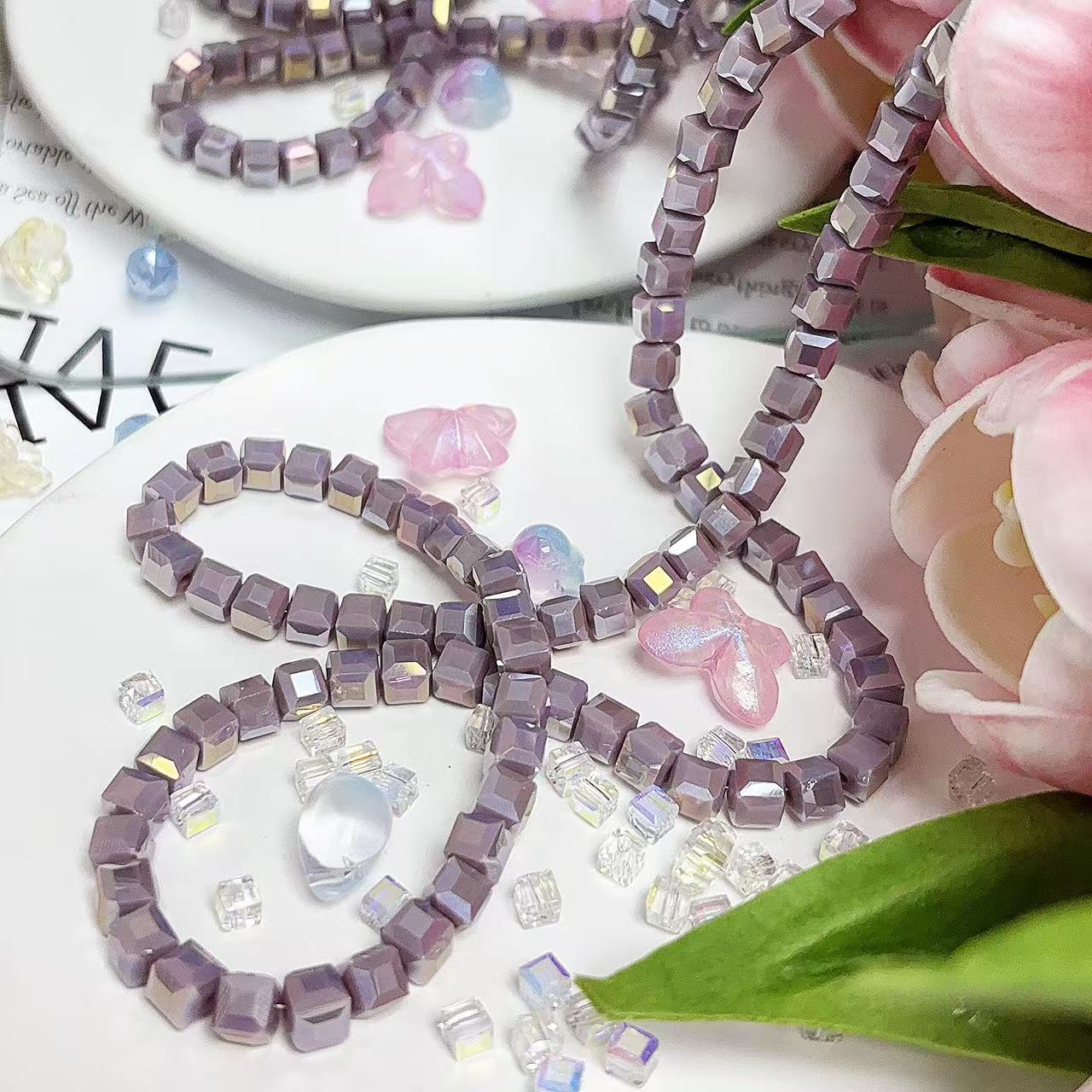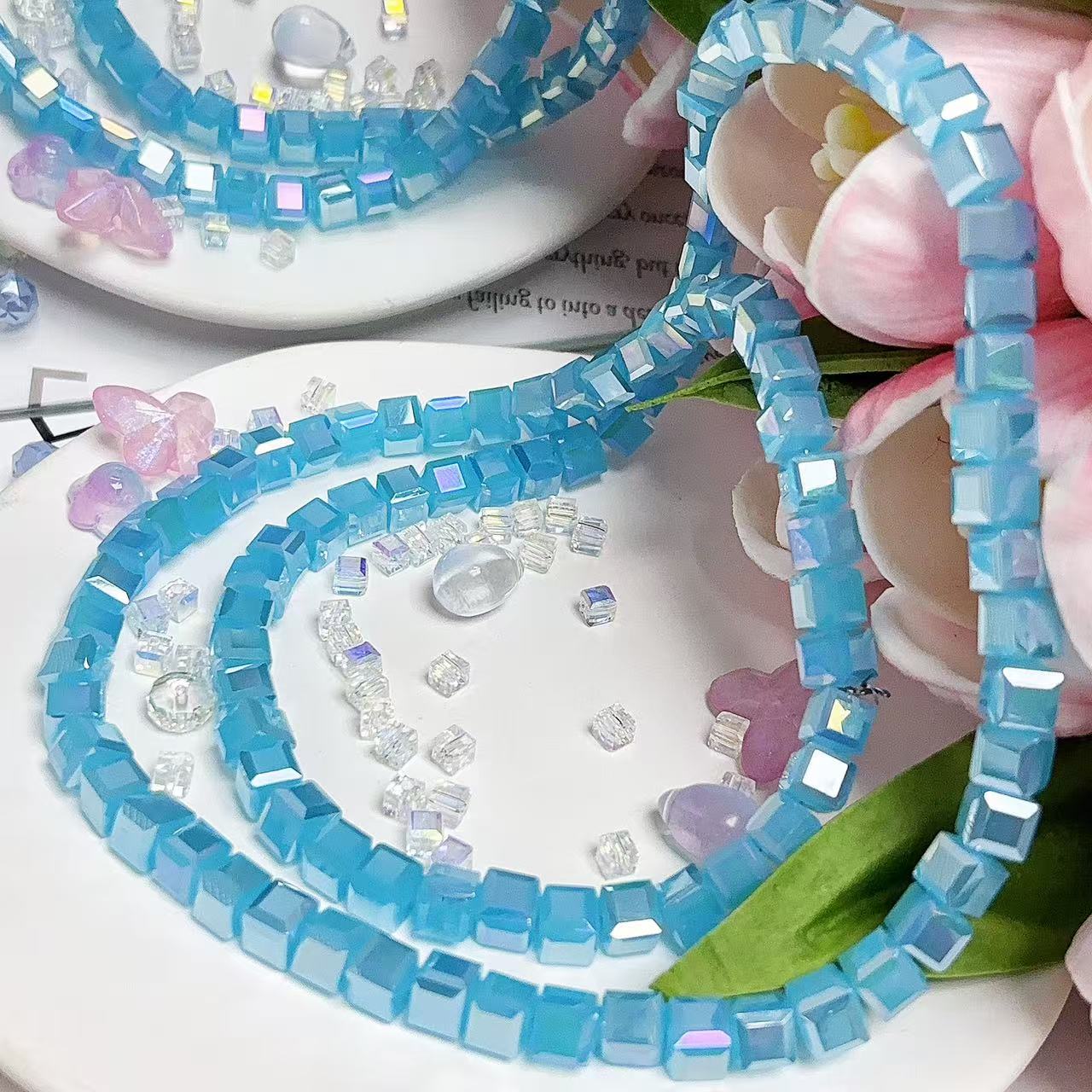0.23 角砂糖形ビーズ | カラーメッキ、明るい (4mm&6mm)の数量を減らす