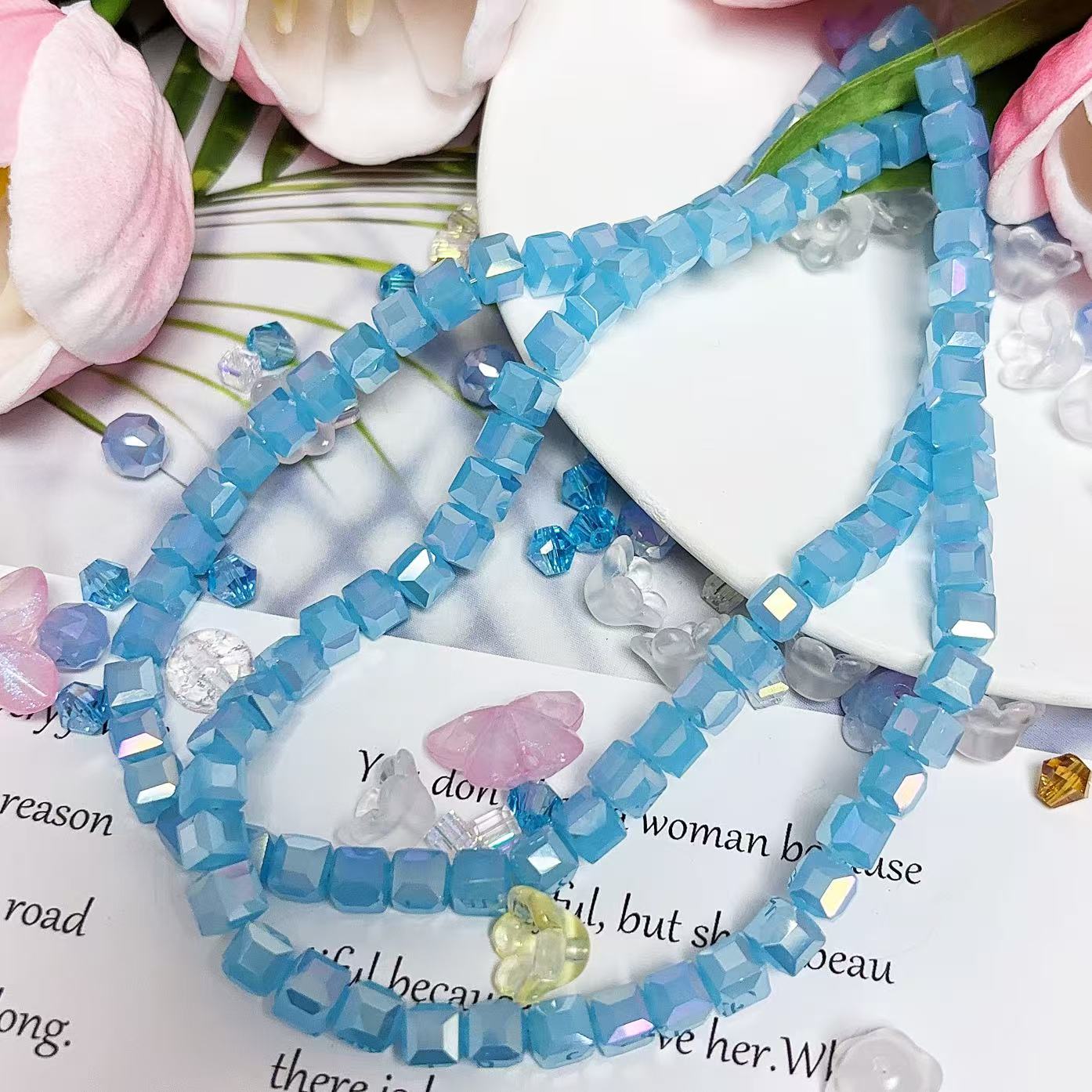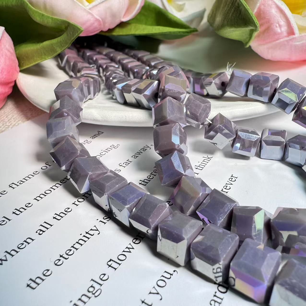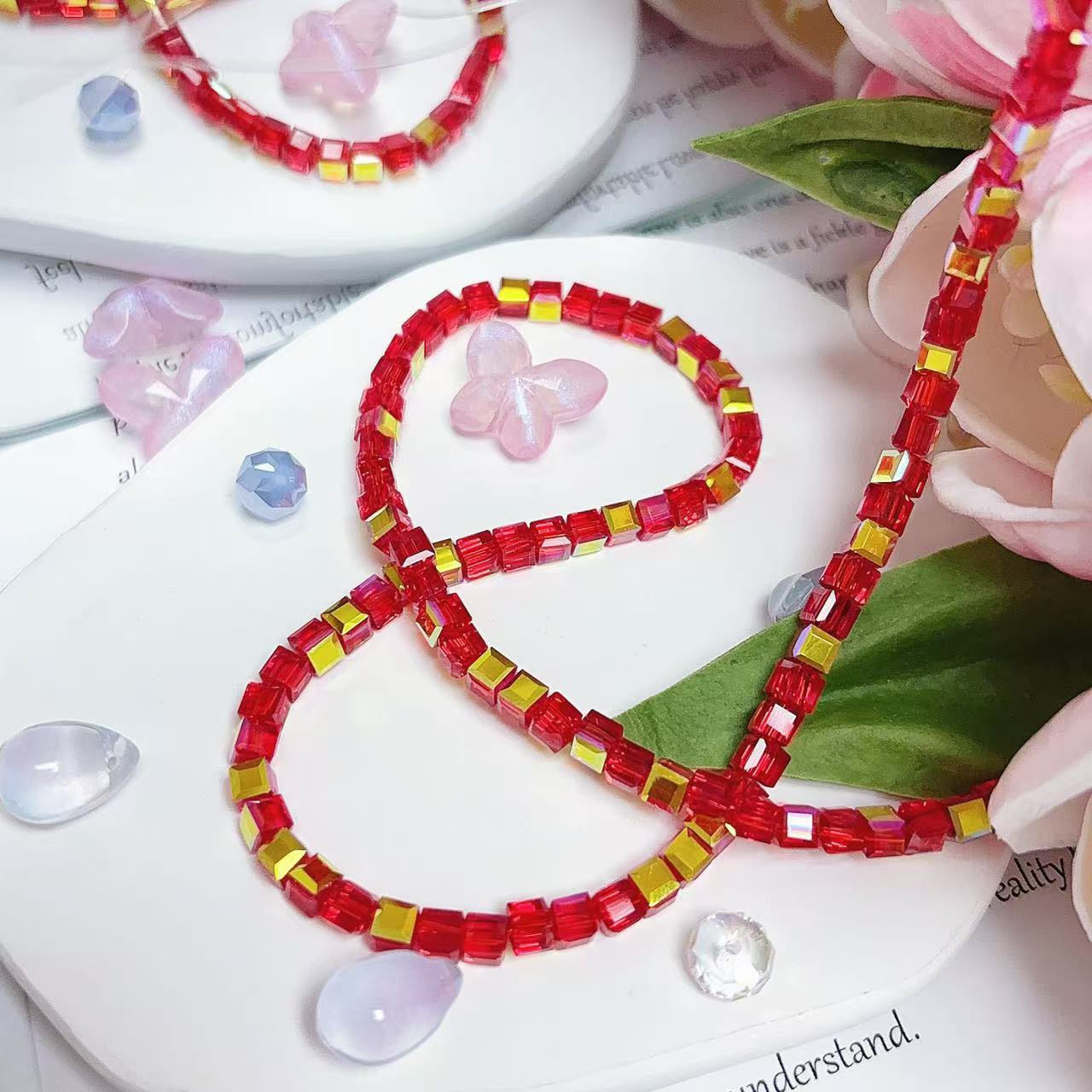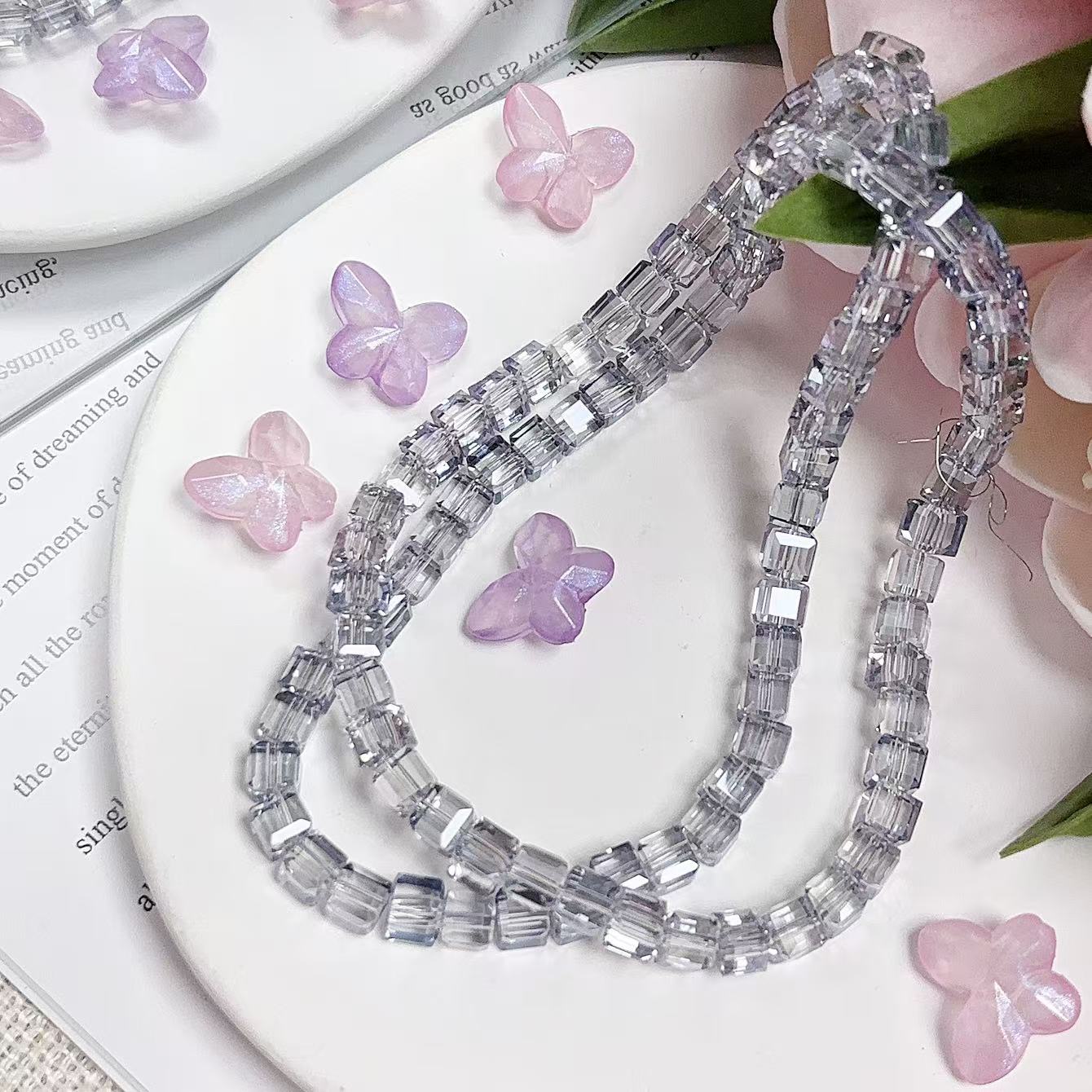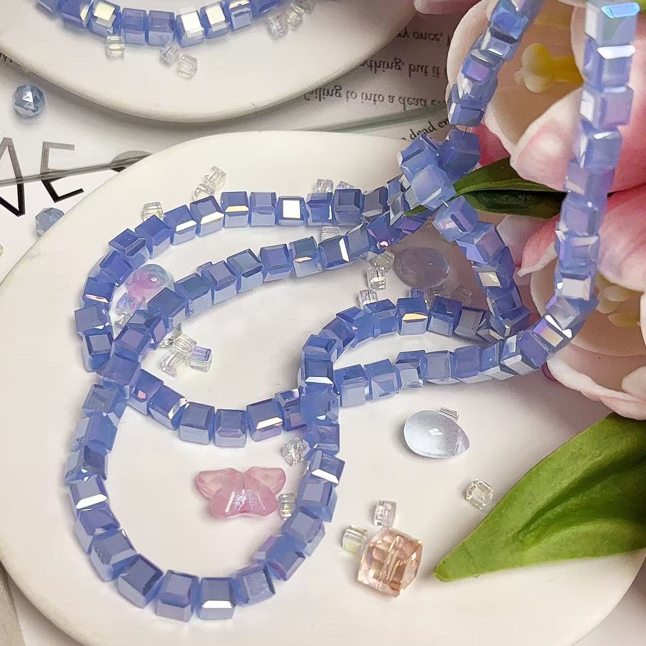 0.23 角砂糖形ビーズ | カラーメッキ、明るい (4mm&6mm)の数量を減らす
